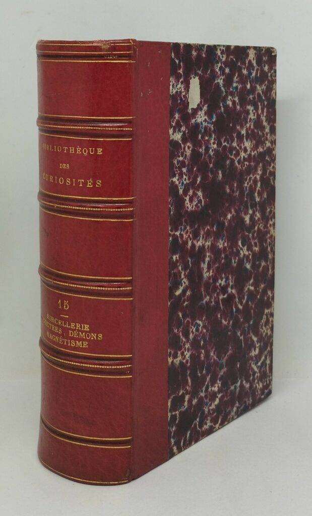 Manque de papier au premier plat de la reliure. Cachet de la Bibliothèque Valpré (Ecully)*** sur les deux gardes volantes ainsi qu’au titre du livre de Louandre. Bon état intérieur (quelques rousseurs ou taches, un petit manque angulaire à un feuillet d’Infernaliana…) Notre volume porte la tomaison 15 et, en dessous : « Sorcellerie, Spectres, Démons, Magnétisme ».
