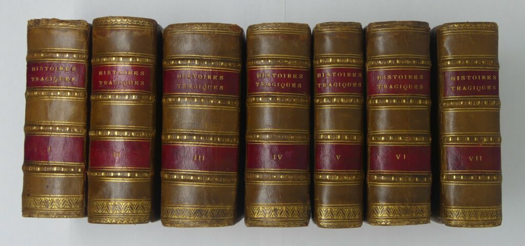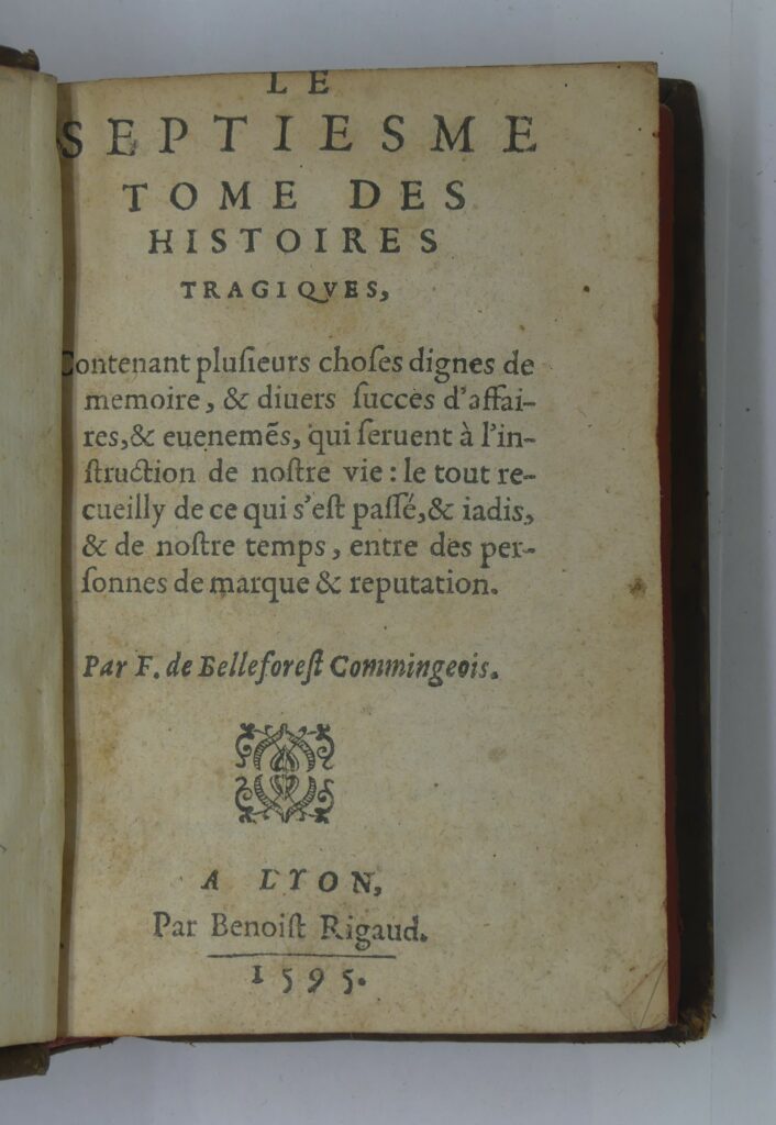 Ce remarquable ensemble de 112 textes dont la publication originale débute en 1559 avec la traduction par Pierre Boaistuau (1517-1566) de quelques novelle de l’italien Bandello (ca. 1484-1561), et s’achève en 1582 par un septième tome de la main de François de Belleforest, constitue l’acte de naissance de l’important et prolifique genre littéraire des histoires tragiques.*