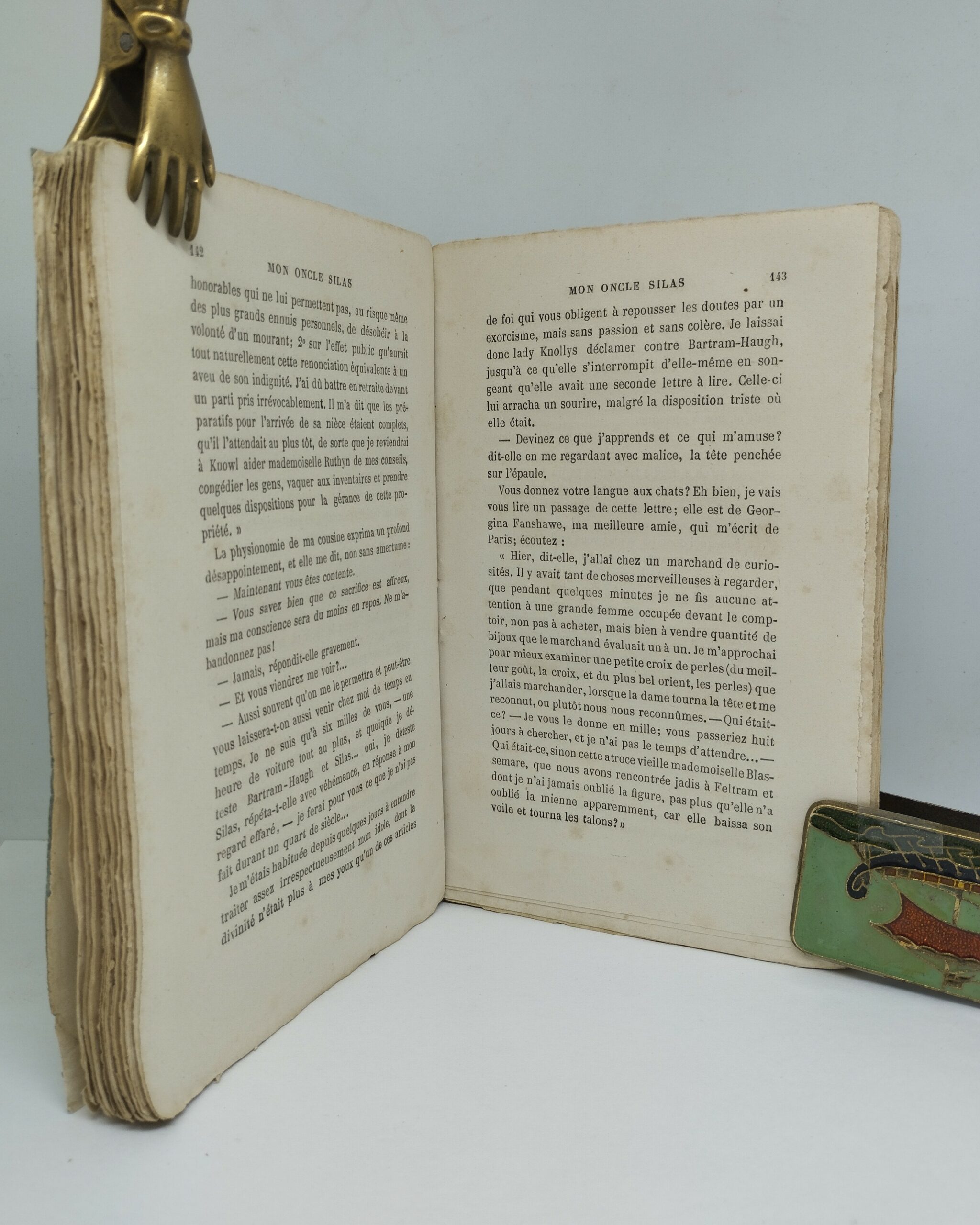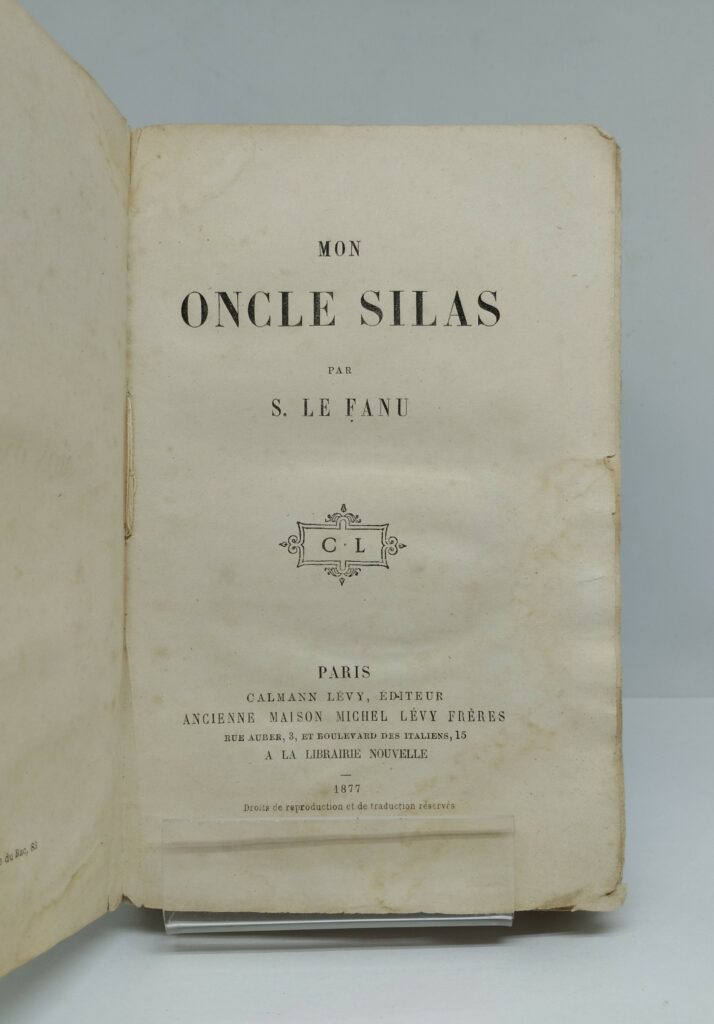 LE FANU, Joseph Sheridan. Mon oncle Silas. Paris, Calmann Lévy, 1877. Un volume broché ; couverture imprimée verte. 2 ff., et 362 p. (et 4 ff. publicitaires). 119×186 mm.