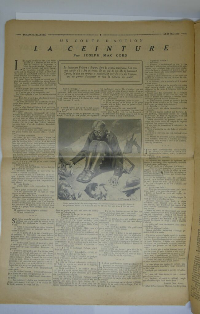 [mac Cord, Joseph, La Ceinture]. Dimanche Illustré, 26 mai 1929, N° 326. 16 pages. 300×435 mm. Petites déchirures sans manques en haut des feuillets.
