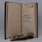 Littérature – avant 1850 MÜNSTER, Sebastian. La cosmographie vniverselle, contenant la situation de toutes les parties du monde, auec leurs proprietez & appartenances […]. Un feuillet de 313×209 mm, paginé 1103-1104, extrait du livre IIII d’un exemplaire d’une édition du seizième siècle de la première traduction … WYNNE (Justine). Les Morlaques. Par J. W. C. D. U. & R. Sans lieu [Modène], 1788. In-8, pleine basane, roulette dorée en encadrement, dos à nerfs, tranches rouges, pièce de titre rouge (reliure de l’époque). Infimes frottements à la reliure, sans gravité. (4) ff., 358 pages et (1) f. blanc … BÜRGER (Gottfried August). Léonora. Traduction de l’anglais, par S. AD. DE LA MADELAINE. Paris, Chez Janet et Cotelle, 1811. In-8, cartonnage moderne Bradel, titre en long (Goy et Vilaine). 37 pages et 1 ff blanc. 201×123 mm. Petit manque de papier au dernier feuillet (blanc). Quelques rousseurs … THIESSÉ (Léon). Lettres normandes ou Petit tableau moral, politique et littéraire, adressées par un Normand, devenu Parisien, à plusieurs de ses compatriotes [Lettres normandes, ou Correspondance politique et littéraire, à partir du cinquième tome]. Au Bureau des Lettres normandes, Chez Foulon et … [BÉRARD (Cyprien), Nodier (Charles)]. Lord Ruthwen, ou les vampires, roman de C. B. ; publié par l’auteur de Jean Sbogar et de Thérèse Aubert. Paris, Ladvocat, 1820. 2 tomes en 1 volume. Cartonnage rose (reliure de l’époque). 2 ff. (Ouvrages récemment mis en vente), faux-titre, titre, (iv), 208 … [BÉRARD (Cyprien), Nodier (Charles)]. Lord Ruthwen, ou les vampires. Un autre exemplaire de l’édition originale : deux tomes en deux volumes, demi-chagrin marron, tête rouge, reliure du 19e (G. Abich, Besançon). 156×95 mm. Joli exemplaire. 4000 euros Exemplaire dédicacé par l’auteur … Martainville (Alphonse). Le Drapeau blanc, Journal de la politique, de la littérature et des théâtres. Deux volumes in-folio. Volume I : du N° 1 (16 juin 1819) au N° 199 (31 décembre 1819) ; Volume II : du N° 1 (1er janvier 1820) au N° 182 (30 juin 1820). Le numéro du 24 août 1819 ne figure pas ; … NODIER (Charles). Le Vampire, Mélodrame en trois actes, avec un prologue, Par M*** [Charles Nodier, Pierre Carmouche et Achille de Jouffroy]. Musique de M. Alexandre Piccini ; Décors de M. Ciceri. Représenté, pour la première fois, à Paris, sur le Théâtre de la Porte-Saint-Martin, le 13 juin 1820. … Pièce de tissu imprimée. Premier quart du 19e siècle. Largeur : 83 cm ; hauteur : 316 cm. vendu Le décor de cette toile historiée se compose de quatre scènes répétées, presque identiques à celles de gravures parues fin 1821 ou début 1822 chez Boulard, M.d d’Estampes Rue St Martin N°112. Ces … Nodier (Charles). Smarra ou les démons de la nuit, songes romantiques, traduits de l’esclavon du Comte Maxime Odin. Par Ch. Nodier. Ponthieu, 1821. In-12, demi-chagrin maroquiné brun, dos lisse orné (reliure de l’époque). Faux titre, titre, 212 pages 163×96 mm. Ex-libris armorié Bibliothèque du … [COLLIN DE PLANCY ?]. Infernaliana ou anecdotes, petits romans nouvelles et contes sur les revenants, les spectres, les démons et les vampires. Publié par Ch. N***. Paris, Sanson, Nadeau, 1822. In-12, joli bradel cartonnage papier 18e dont le rare motif de feuilles bleues étirées au pinceau sur … GOETHE (Johann Wolfgang von). Des hommes célèbres de France au dix-huitième siècle, et de l’état de la Littérature et des Arts à la même époque ; par M. Goëthe : Traduit de l’allemand par MM. De Saur et de Saint-Géniés ; et suivi de notes des traducteurs, destinées à développer et à compléter sur … GOETHE (Johann Wolfgang von). Poésies de Goethe auteur de Werther traduites pour la première fois de l’allemand. Par Mme E. Panckoucke. Paris, C.L.F. Panckoucke, 1825. In-18 (117×73 mm) de 2 ff.n.ch., LIX, 155 pp. Veau vert bouteille, plats ornés de filets et d’une roulette à froid, petits … NODIER (Charles). Lettre autographe signée à Armand Séville. Sans date (10 décembre 1825, sur le pli). ½ page in-8. Adresse sur le pli : « Armand Séville, Homme de Lettres, au bureau du Journal le Corsaire ». 135×215 mm 750 euros Nodier et le commerce du vampire. Un document très rare. « Mon cher … [Planché, James Robinson]. Affiche publicitaire anglaise pour le New Theatre de Bridgnorth, imprimée au recto, annonçant pour le 11 septembre 1834 une représentation de The Vampire or the Bride of the Isles. (environ 178×248 mm). vendu Cette pièce de James Robinson Planché est une adaptation du … Balzac (Honoré de), [Gautier (Théophile)]. La Morte amoureuse in Chronique de Paris (Nouvelle Série), IIIe année, Tome 1, 1836. N° 1 à 24 (3 janvier-27 mars), suivi de Tome II, N° 1 à 26 (31 mars-30 juin). 384 et 416 p. Sept planches, dont six de mode, en couleurs, et une lithographie en noir et …